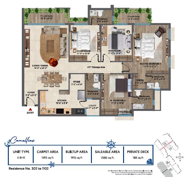 | Type 4 BHK Flats / Apartments | Super Area 2585 Sq.ft. | Price 1.80 Cr. | Floor Plan